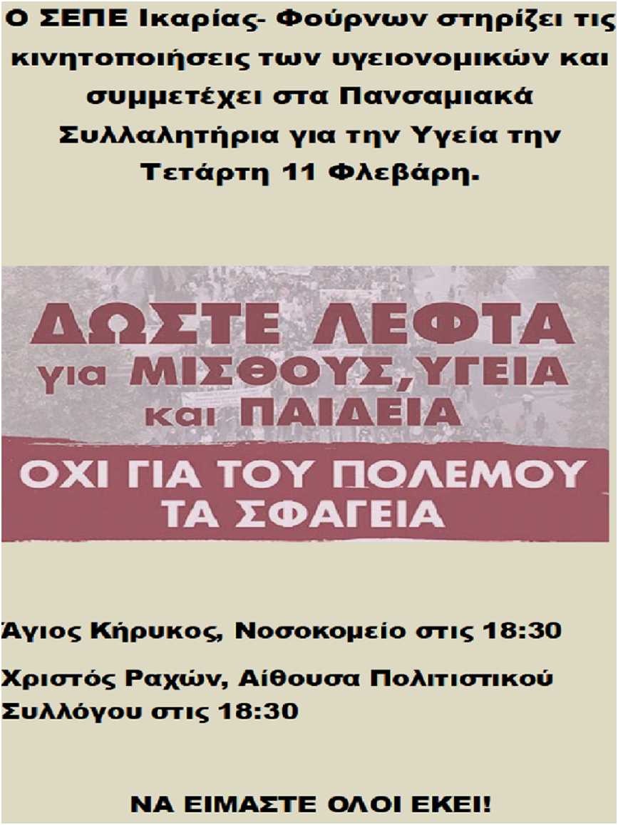ΕΚΣ: Δίνουν λεφτά για του πολέμου τα σφαγεία και στα νησιά διαλύουν την Υγεία