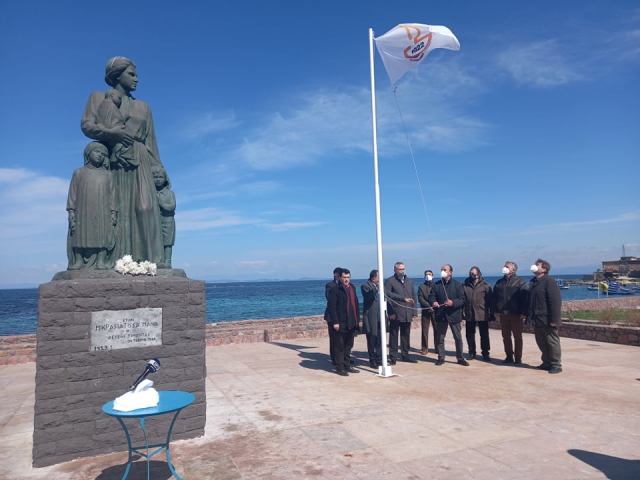 Μετά την επιμνημόσυνη δέηση που τελέστηκε από τον Μητροπολίτη Μυτιλήνης Ιάκωβο, πραγματοποιήθηκε η τελετή της έπαρσης της σημαίας Μικρασιατικής Μνήμης σε μια εκδήλωση που διοργάνωσε ο Δήμος Μυτιλήνης σε συνεργασία με τα προσφυγικά σωματεία, το Σύλλογο κατοίκων συνοικιών Κουλμπάρα και Κιόσκι «το κιρκινέτσι», το Σύλλογο της Επάνω Σκάλας και το Σύλλογο των Μικρασιατών της Σκάλας Λουτρών «το δελφίνι».
