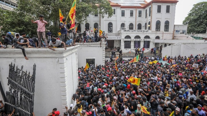 Ένα πλήθος διαδηλωτών εισέβαλε στην κατοικία του πρωθυπουργού της Σρι Λάνκα το βράδυ του Σαββάτου στο Κολόμπο, βάζοντας φωτιά, έγινε γνωστό από την αστυνομία και το περιβάλλον του πρωθυπουργού.