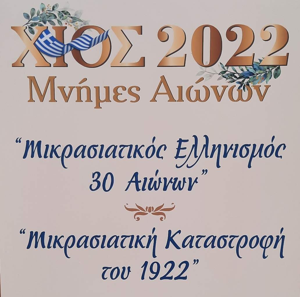 Επετειακή ημερίδα με θέμα «1922-2022: Εκατό Χρόνια Άσβεστης Μνήμης», διοργανώνει το Σάββατο, 8 Οκτωβρίου, η Επιτροπή Επετειακών Εκδηλώσεων του Δήμου Χίου και ο Φιλολογικός Σύλλογος Αθηνών «Παρνασσός».
