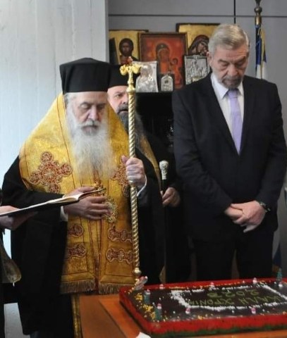 Αμέσως μετά, ο Σεβασμιώτατος μετέβη στην Αντιπεριφέρεια της Σάμου και στο Δημαρχείο του Δήμου Ανατολικής Σάμου και ευλόγησε τις πρωτοχρονιάτικες Αγιοβασιλόπιττες. Ευχήθηκε το Νέο Έτος να είναι καρποφόρο, ειρηνικό, χαρούμενο και ελπιδοφόρο.