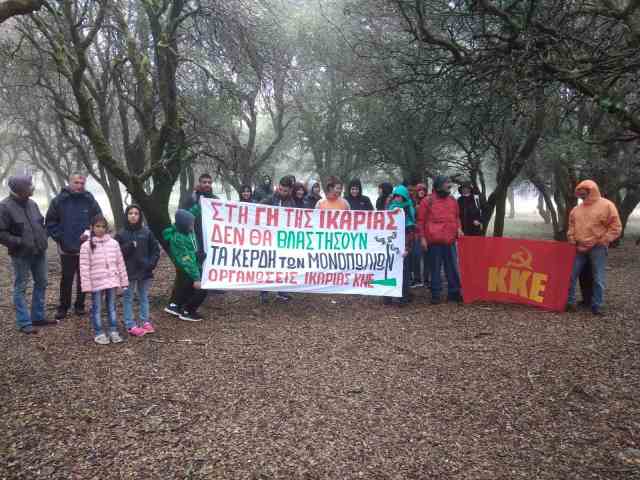 Στην ομιλία που έγινε από το στέλεχος της ΚΝΕ, Ξένο Κόχυλα, τονίστηκε «ότι το σχεδιαζόμενο έργο της τοποθέτησης 110 α/γ σε όλη την κορυφογραμμή του νησιού θα έχει τεράστιες περιβαλλοντικές και οικονομικές αρνητικές συνέπειες. Θύμισε στους παρευρισκόμενους ότι τον Δεκέμβριο που μας πέρασε, ΝΔ, ΣΥΡΙΖΑ και ΠΑΣΟΚ ψήφισαν από κοινού την καταστροφική για το περιβάλλον οδηγία της ΕΕ με την οποία έργα για την εγκατάσταση ΑΠΕ χαρακτηρίζονται ως υπέρτατου δημοσίου συμφέροντος! Ότι με πρόσχημα την προστασία του περιβάλλοντος και της «πράσινης ανάπτυξης» προβλέπεται η επιτάχυνση των αδειοδοτήσεων για επενδύσεις σε Ανανεώσιμες Πηγές Ενέργειας. Βουνά και πεδιάδες μετατρέπονται σε «ειδικές οικονομικές ζώνες» για την εγκατάσταση ΑΠΕ για να αυξάνουν τα κέρδη τους τα μονοπώλια. Στις «διαθέσιμες» περιοχές περιλαμβάνονται κι αυτές που έχουν χαρακτηριστεί Natura και ότι η κορυφογραμμή της Ικαρίας αποτελεί μεταναστευτικό διάδρομο πουλιών και μπορεί να γίνει, αν δεν είναι ήδη, τόπος ζωής μοναδικών ειδών χλωρίδας και πανίδας. Παράλληλα πρέπει να διαφυλαχτεί το αρχαιότερο δάσος του Αιγαίου, αυτό του Ράντη.
