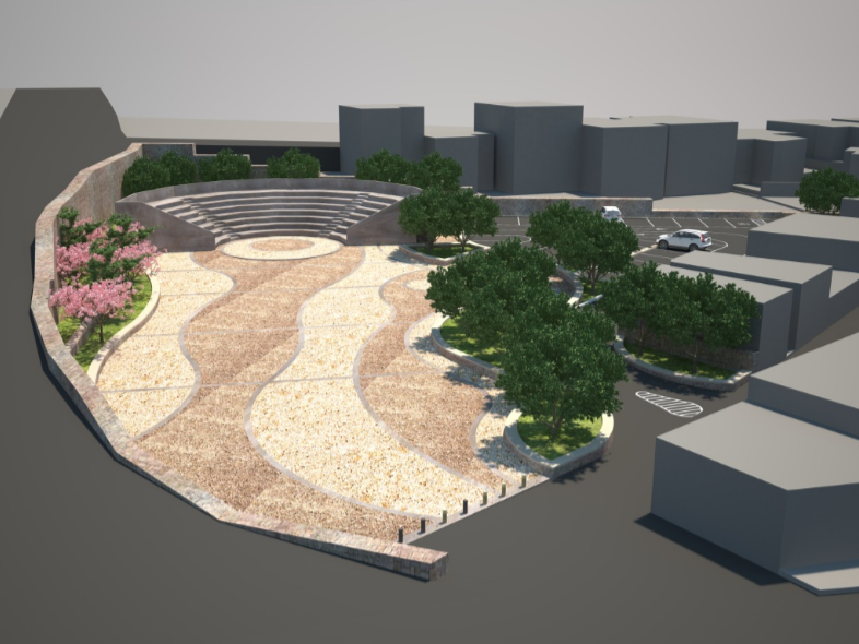 Εκεί, υλοποιείται μια από τις μεγαλύτερες αναπλάσεις της Μυτιλήνης για τη δημιουργία ενός χώρου, που μέχρι σήμερα δεν υπάρχει στην πόλη και ο οποίος εντάχθηκε στο συνολικότερο σχέδιο της Δημοτικής αρχής για την αναβάθμιση και την ανάδειξη της Επάνω Σκάλας και της παλιάς πόλης, σύμφωνα με το Γενικό Πολεοδομικό Σχέδιο.