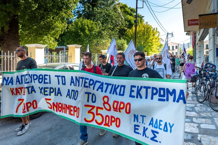 Χτες 21 Σεπτεμβρίου πραγματοποιήθηκε η απεργιακή κινητοποίηση με τη συμμετοχή του Εργατικού κέντρου Σάμου, του ΝΤ ΑΔΕΔΥ καθώς και σωματείων εργαζομένων και φορέων όλου του νησιού. Στην πορεία αλλά και στην συγκέντρωση αργότερα διατρανώθηκε η αποφασιστικότητα της εργατικής τάξης να παλέψει για σύγχρονα δικαιώματα, για ΣΣΕ σε κάθε κλάδο που θα βάζουν εμπόδια στο ξεσάλωμα της εργοδοσίας, για ουσιαστικές αυξήσεις, σταθερό ωράριο, «μπλόκο» στην «ευελιξία» και τις απολύσεις. αντίθεση των εργαζομένων με το νέο νομοσχέδιο έκτρωμα που καταργεί στην ουσία το 8ωρο-5ημερο.