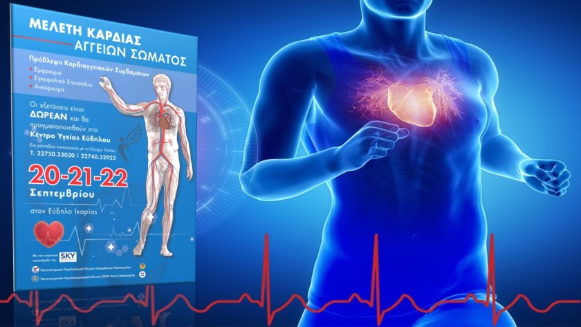 Η Πανεπιστημιακή Καρδιολογική Κλινική του Ιπποκράτειου Νοσοκομείου σε συνεργασία με την Πανεπιστημιακή Αγγειοχειρουργική Κλινική του ΕΚΠΑ στο Αττικό Νοσοκομείο διοργανώνουν τριήμερο πρόγραμμα δωρεάν ιατρικών εξετάσεων για την πρόληψη Καρδιαγγειακών Συμβάντων στο Κέντρο Υγείας Ευδήλου Ικαρίας.