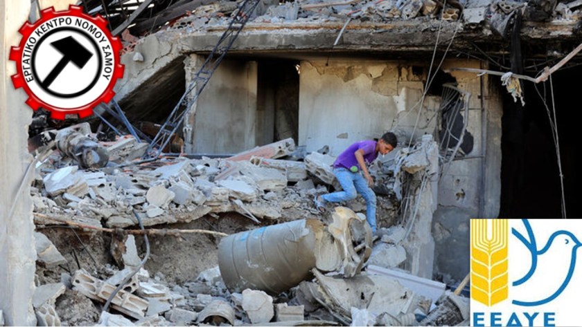 Το Εργατικό κέντρο της Σάμου (ΕΚΣ) μαζί με την Πανσαμιακή Επιτροπή ειρήνης (ΕΕΔΥΕ) διοργανώνει συλλαλητήριο αλληλεγγύης στους λαούς της Παλαιστίνης και του Λιβάνου που δέχονται δολοφονικές επιθέσεις από το κράτος-τρομοκράτη του Ισραήλ.