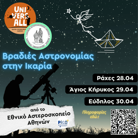 Σειρά δράσεων για μικρούς και μεγάλους με επίκεντρο την επιστήμη της αστρονομίας θα πραγματοποιηθεί από το Εθνικό Αστεροσκοπείο Αθηνών, στο πλαίσιο του προγράμματος «UniversALL: αστρονομία για μαθητές ακριτικών περιοχών» σε συνεργασία με τα μετέχοντα στο πρόγραμμα σχολεία: Γυμνάσιο Λ.Τ. Ραχών, Γυμνάσιο Αγίου Κηρύκου, ΓΕΛ Αγίου Κηρύκου και ΓΕΛ Ευδήλου.
