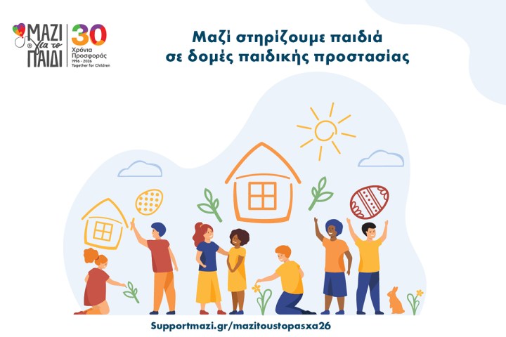 Tο Μαζί για το Παιδί, φέτος το Πάσχα, μας καλεί μέσω της καμπάνιας «Μαζί τους το Πάσχα», να ενώσουμε τις δυνάμεις μας και να στηρίξουμε 160 παιδιά που έχουν απομακρυνθεί από το οικογενειακό τους περιβάλλον λόγω κακοποίησης ή παραμέλησης και σήμερα ζουν σε δομές παιδικής προστασίας. Μαζί μπορούμε να διασφαλίσουμε ότι κάθε μέρα και κάθε γεύμα τους θα είναι γεμάτο φροντίδα και αξιοπρέπεια.