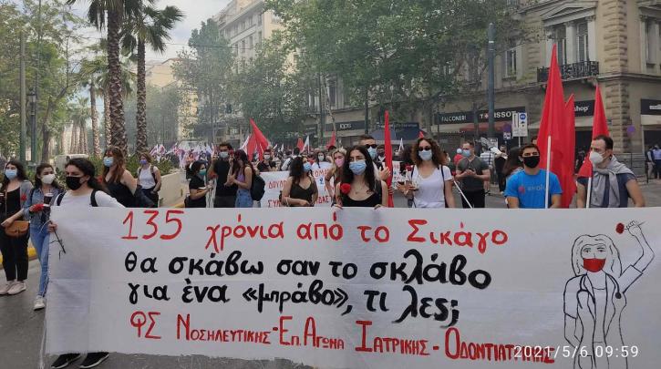 Το 1892 έγινε η πρώτη πρωτομαγιάτικη συγκέντρωση στην Ελλάδα, από τον Σοσιαλιστικό Σύλλογο του Καλλέργη. Το 1893, 2000 διαδήλωσαν ζητώντας οχτάωρο, Κυριακή αργία και κρατική ασφάλιση στα θύματα εργατικών ατυχημάτων. Το 1894, γίνεται μια μεγάλη συγκέντρωση με τα ίδια αιτήματα που λήγει με 10 συλλήψεις και τον Αύγουστο ακολουθεί σύλληψη του σοσιαλιστή Σταύρου Καλλέργη.