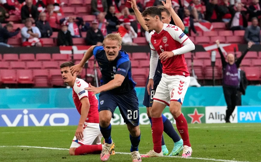 Ο Αγώνας είχε διακοπεί στο 43′ με τον τραυματισμό του Έρικσεν, όπως γράψαμε νωρίτερα, σε εκείνο το σημείο έγιναν συγκλονιστηκά πράγματα με το αρχηγό της Εθνικής Δανίας Σίμον Κίερ να σώζει τον συμπαίκτη του, να καθησυχάζει την σύζυγό του όταν ο Έρικσεν ήταν υπό την φροντίδα των γιατρών και στη συνέχεια οι συμπαίκτες του ποδοσφαιριστή να σχηματίζουν ανθρώπινη αλυσίδα κατά τη μεταφορά του συμπαίκτη τους στο νοσοκομείο.