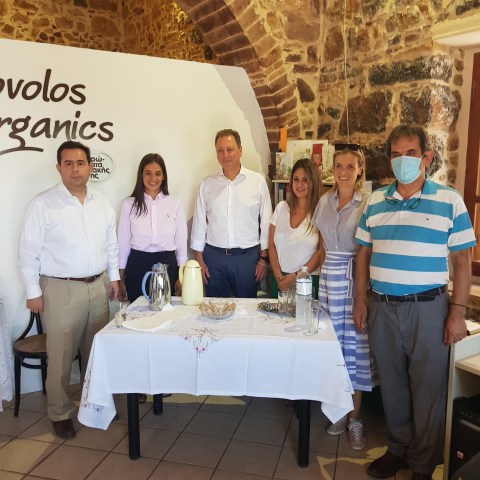 Στη βιοτεχνία «Μυροβόλος», ο κ. Λιβανός συναντήθηκε με την Αργυρώ Κουτσουράδη, μια νέα γεωπόνο που δημιούργησε επιχείρηση παραγωγής αρωματικών και φαρμακευτικών φυτών, τα οποία εξάγει σε επτά ευρωπαϊκές χώρες και στις ΗΠΑ. Όπως είπε ο κ. Λιβανός, στο πρόσωπό της ενσαρκώνεται όλη η προσπάθεια του ΥΠΑΑΤ για ενίσχυση της γυναικείας επιχειρηματικότητας και της σύνδεσης της παραγωγής με την ιστορία και την κουλτούρα της ελληνικής υπαίθρου.