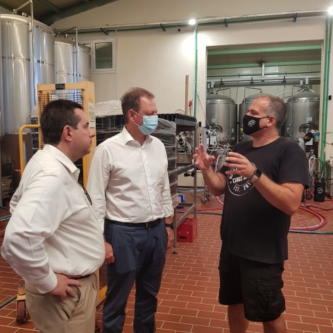 Αμέσως μετά ο υπουργός Αγροτικής Ανάπτυξης και Τροφίμων κ. Λιβανός επισκέφθηκε τις εγκαταστάσεις της μπύρας «Χίος» μιας επιχείρησης που διαπρέπει και ήδη παράγει 150 τόνους μπύρας με την επωνυμία της, ενώ παράλληλα παράγει προϊόντα και για άλλες φίρμες.