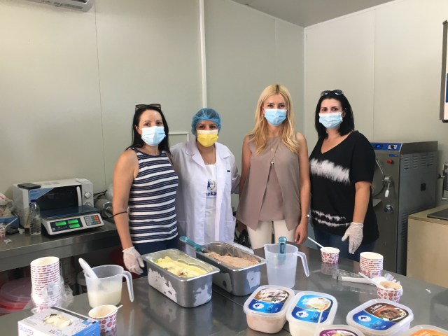 «Το παγωτό, από 100% Μυτιληνιό αιγοπρόβειο γάλα, είναι μοναδικό κι έχει εξαιρετική, γνήσια γεύση. Ο Συνεταιρισμός, παράδειγμα για τις οργανώσεις παραγωγών, κάνει την καθετοποίηση, την δραστηριοποίηση σε νέα αντικείμενα και τη νεωτερικότητα, καθημερινή επιχειρηματική πράξη» τόνισε η Υφυπουργός, που ενημερώθηκε από τους νέους τυροκόμους του Συνεταιρισμού για τα επόμενα σχέδια της δραστηριοποίησης στις γεμιστές σφολιάτες, εκφράζοντας παράλληλα τις ευχαριστίες της για την ψυχραιμία τους να την ξεναγήσουν στη νέα τους μονάδα παραγωγής και τυποποίησης, παρά το θλιβερό γεγονός της πυρκαγιάς.